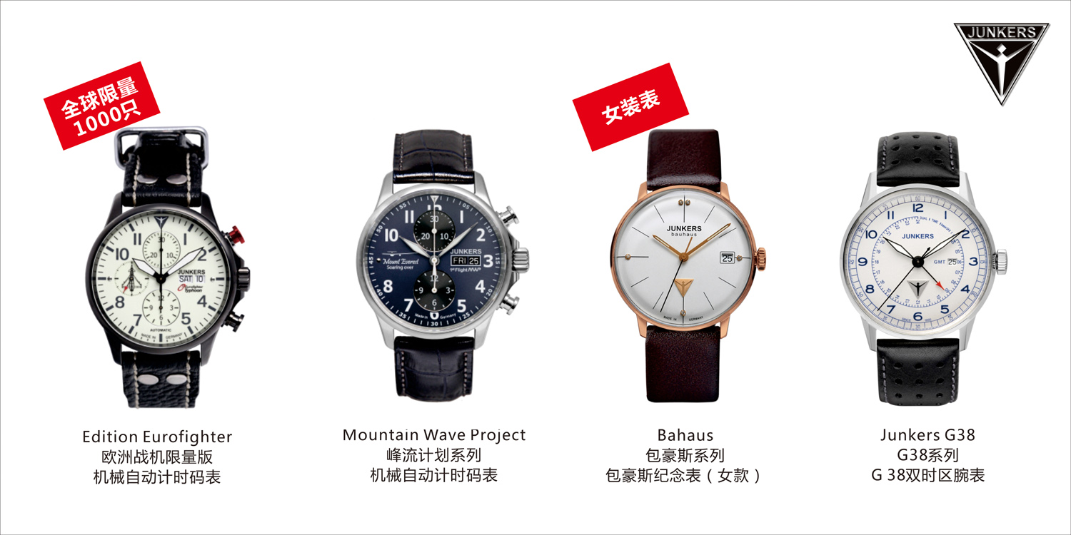 德国制造的Junkers腕表, 每一只都体现传统匠人精神、精选材质、复杂技艺、持久耐用以及和德国风格永恒经典的设计。如荣克表品牌创始人Wilhelm Berk先生指出,从一开始Junkers就致力做脱颖而出,并集独特设计、高性价比、优异品质于一身的德国制造的腕表。同时,也为了向荣克先生致敬。他一生所身体力行的历史责任、品质和创新精神等价值观,如今已经成为其发展的奠基石。德国Junkers腕表由欧格尔(OGEAR.NET)公司引进,以上新品现正在欧格尔旗下“欧洲胡同”零售店热卖。