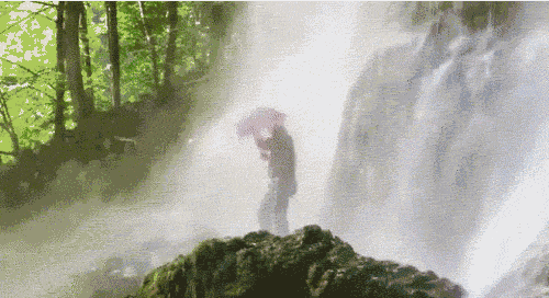 站在瀑布下是实现不了了,但大老师整来了高压水枪,直接对伞面开喷,可以说是毫发无伤了。