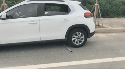 如果觉得这样还不够暴力,上吨位的汽车直接轧过去可以吧。拿起雨伞依旧是完好无损。