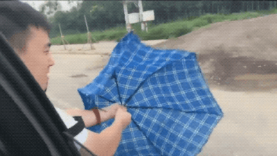 让你知道什么才是真正的超强伞,能扛 12 级大风,车轧不烂!
