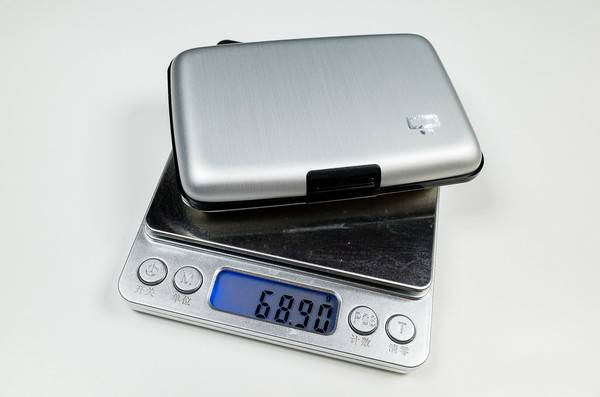 钱包采用了环保铝材外壳汽车级喷漆,非常有质感,而且重量非常轻巧,只有69克。